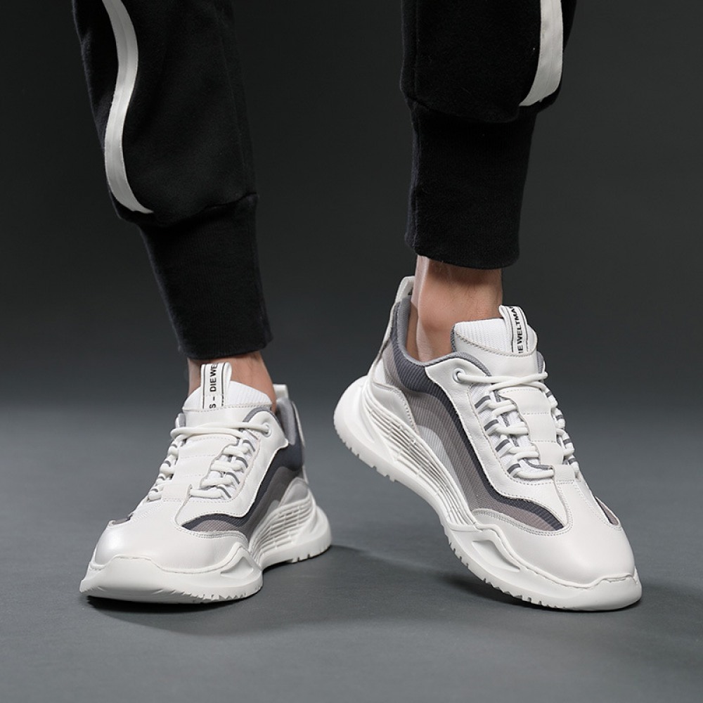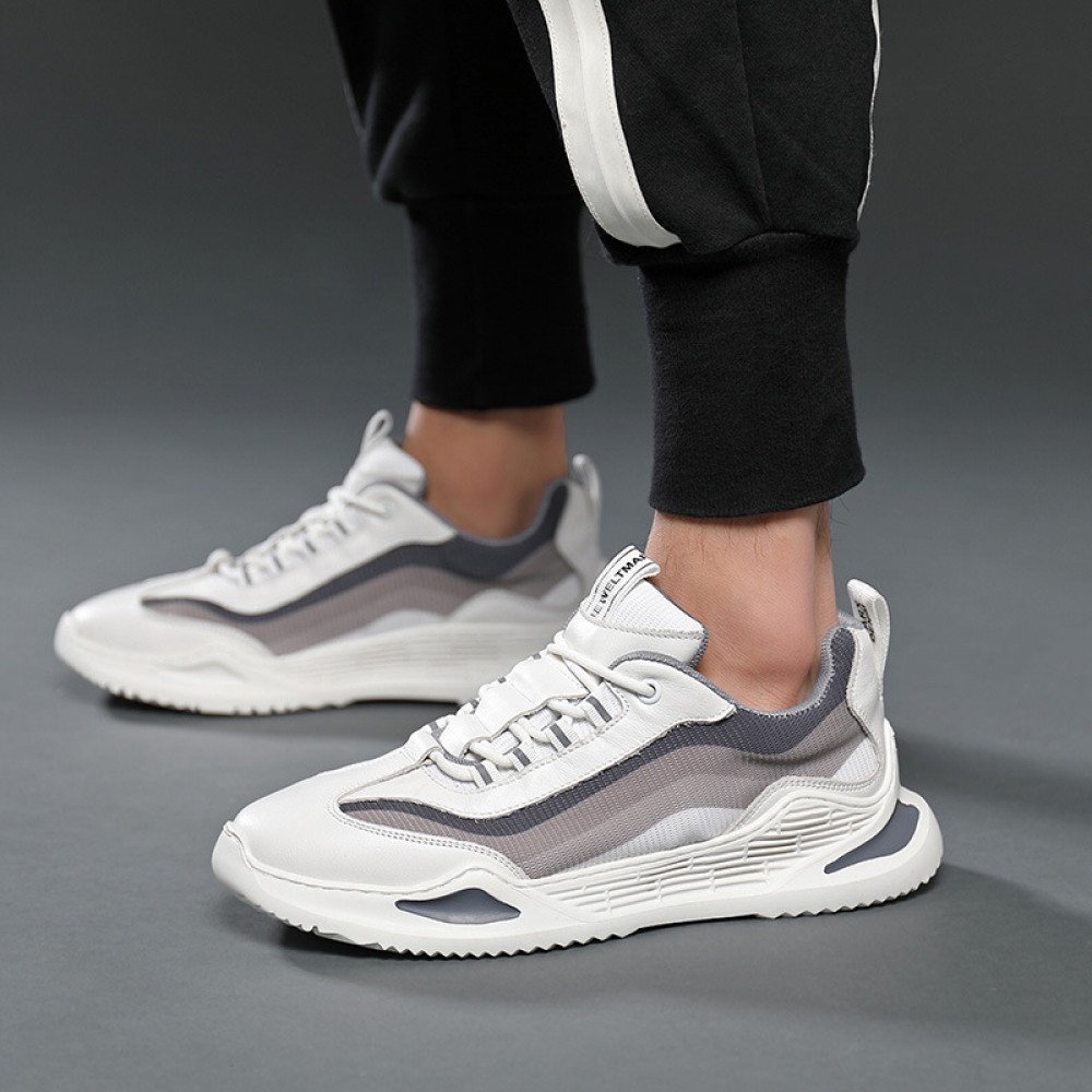 Men's Summer Breathable Mesh Shoes Leather Casual Sneakers Fashionable Trendy